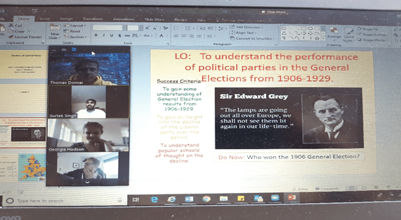 Whilst it is safe to say that most trainees, tutors and mentors prefer ‘face to face’ teaching to other alternatives, the collaboration made it clear that the use of online platforms such as Zoom can work brilliantly too. Importantly, trainee feedback made it clear that ‘small group’ presentations work just as well remotely, with some notable advantages. Kate and Joe cited a ‘complete lack of nerves’ and ‘relaxed atmosphere’ as benefits of the activity, whilst Gurtek stressed that ‘quality feedback from and expert in A-level History [Ben, not me!] was an advantage, going on to say that ‘I actually prefer doing this type of presentational activity online’.